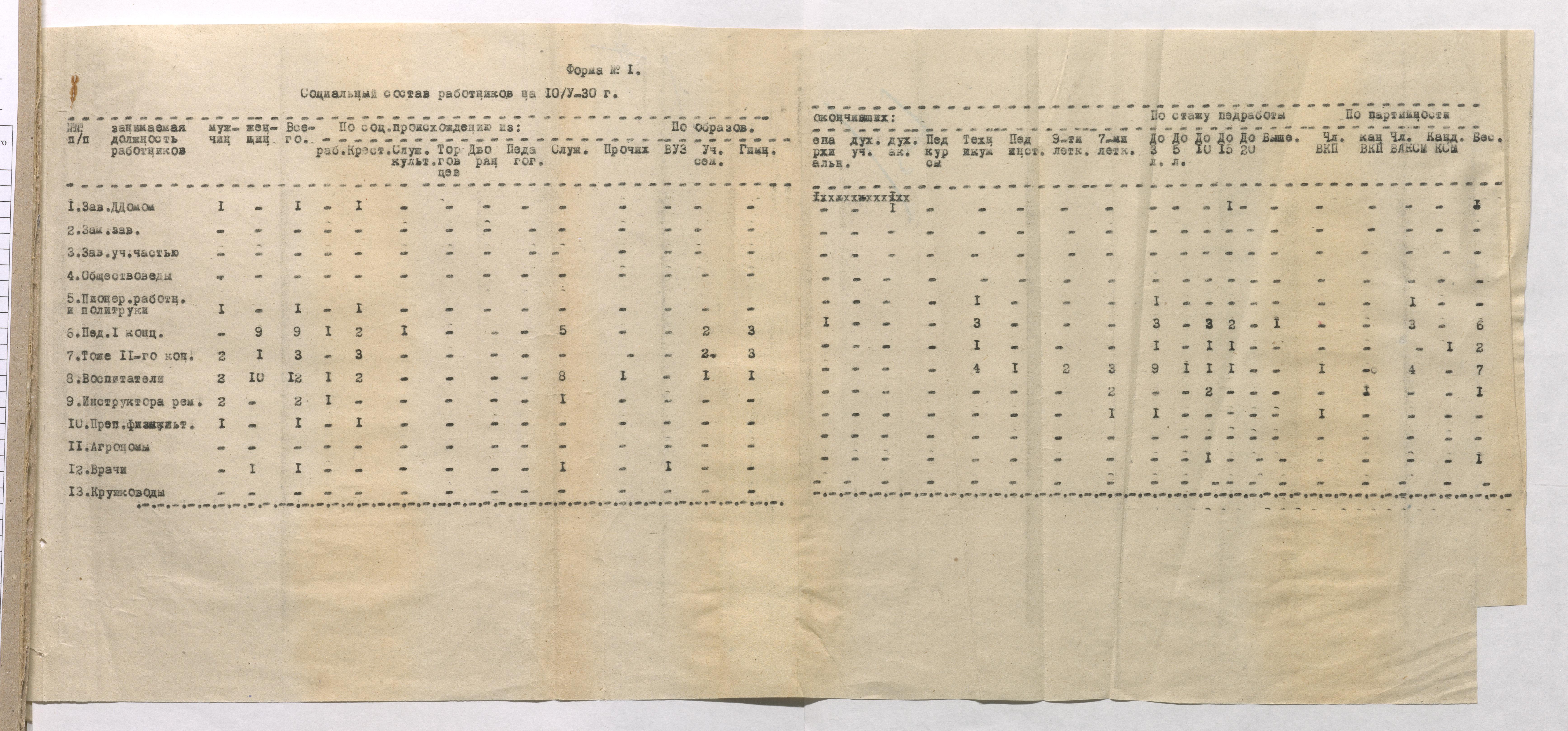 Социальный состав работников Трудовой школы-колонии им В. И. Ленина