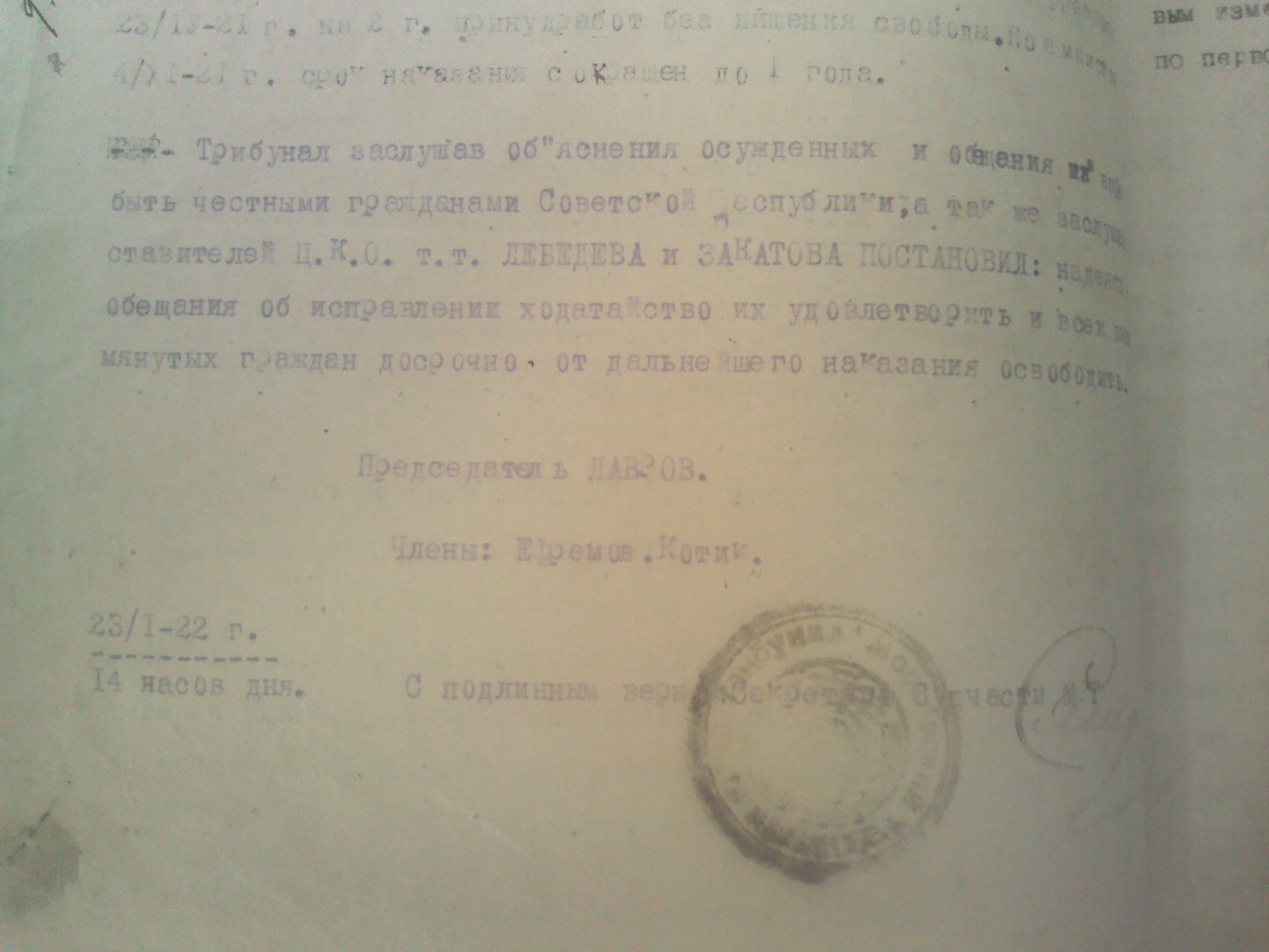 Постановления Московского революционного трибунала. 20.01-02.05.1922