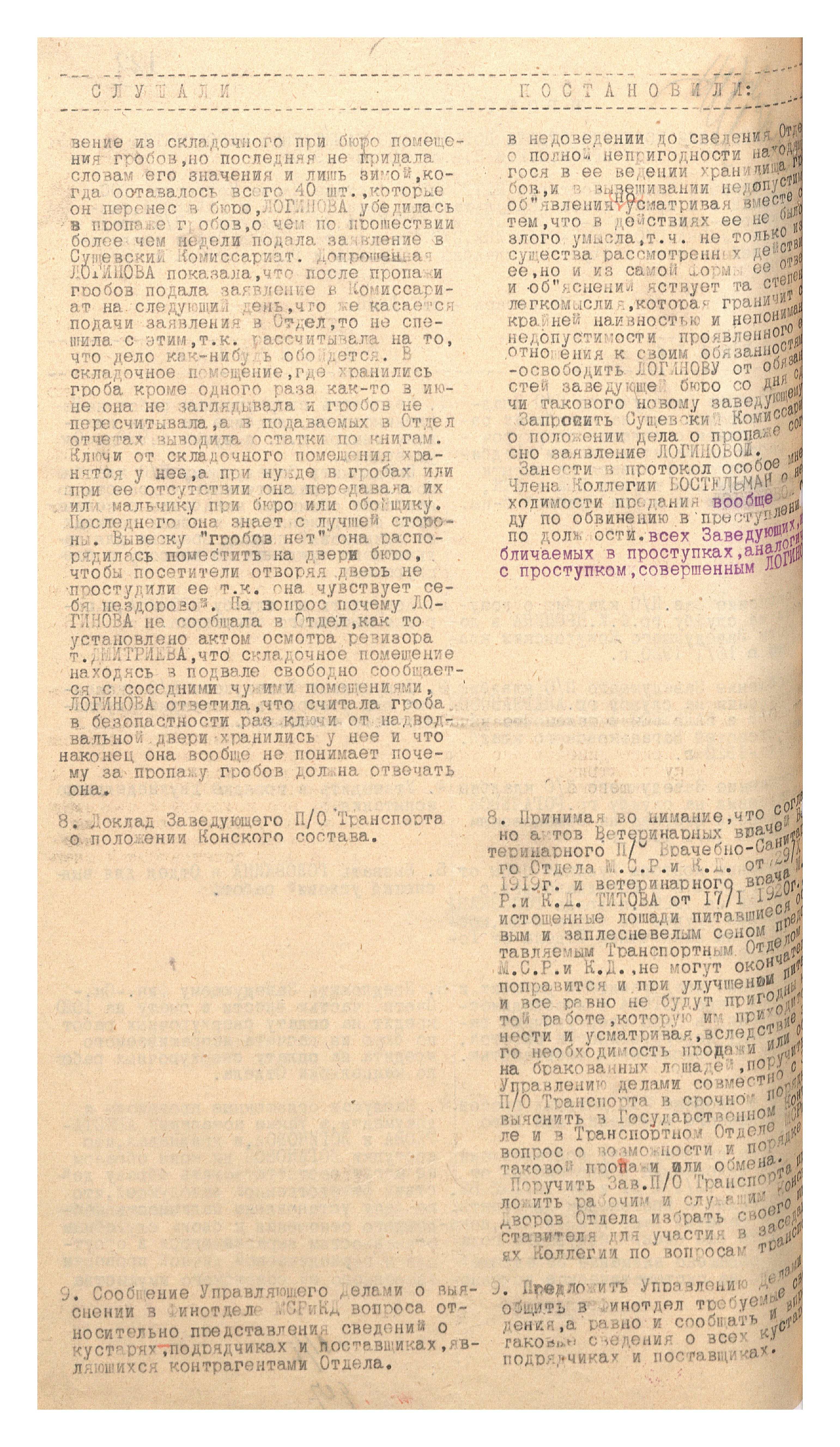 Моссовет. Протокол заседания погребально-санитарной комиссии о постройке крематория в г. Москве. 13.01.-17.08.1920